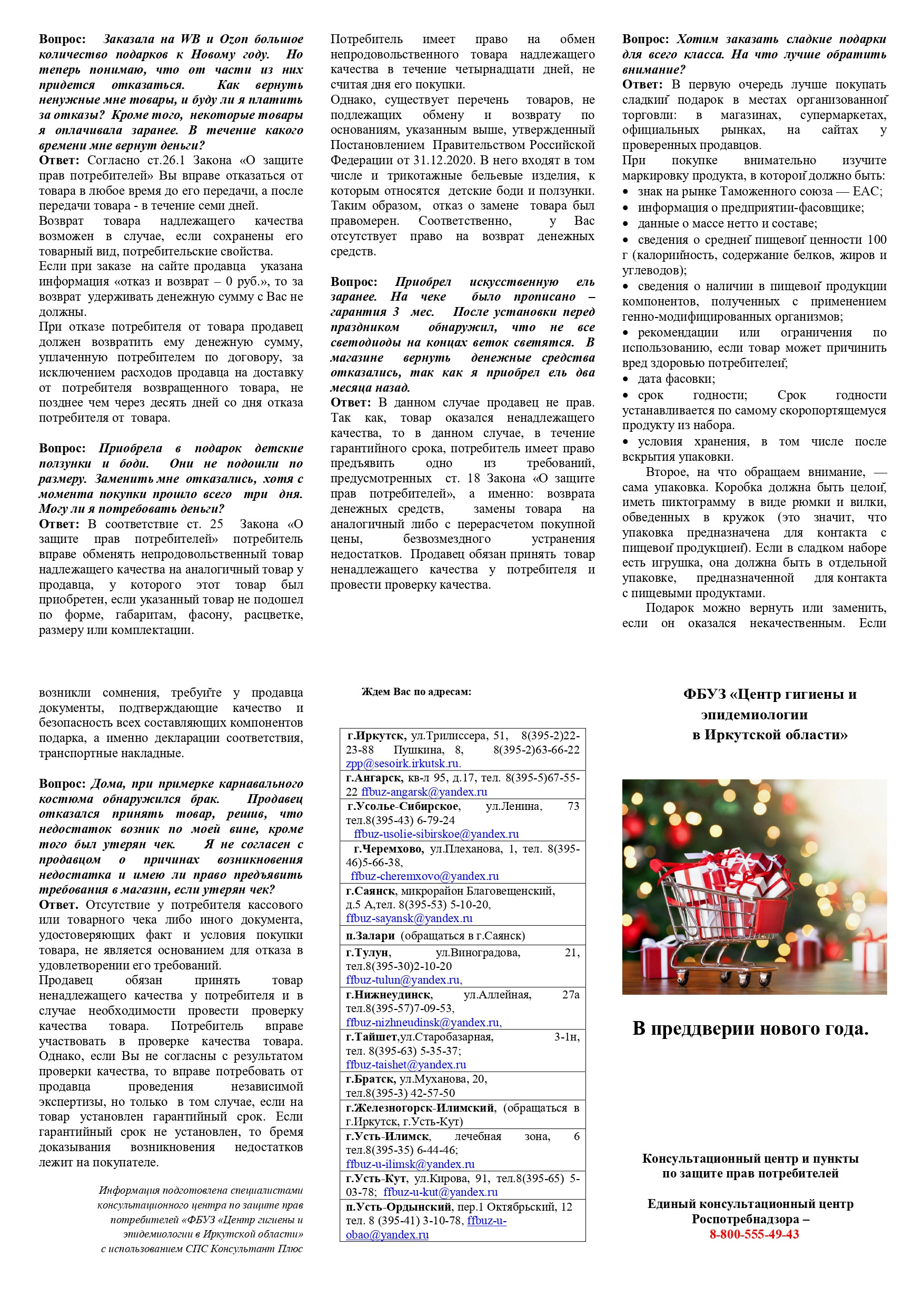 Служба потребительского рынка и лицензирования Иркутской области в предверии Нового года информирует потребителей!