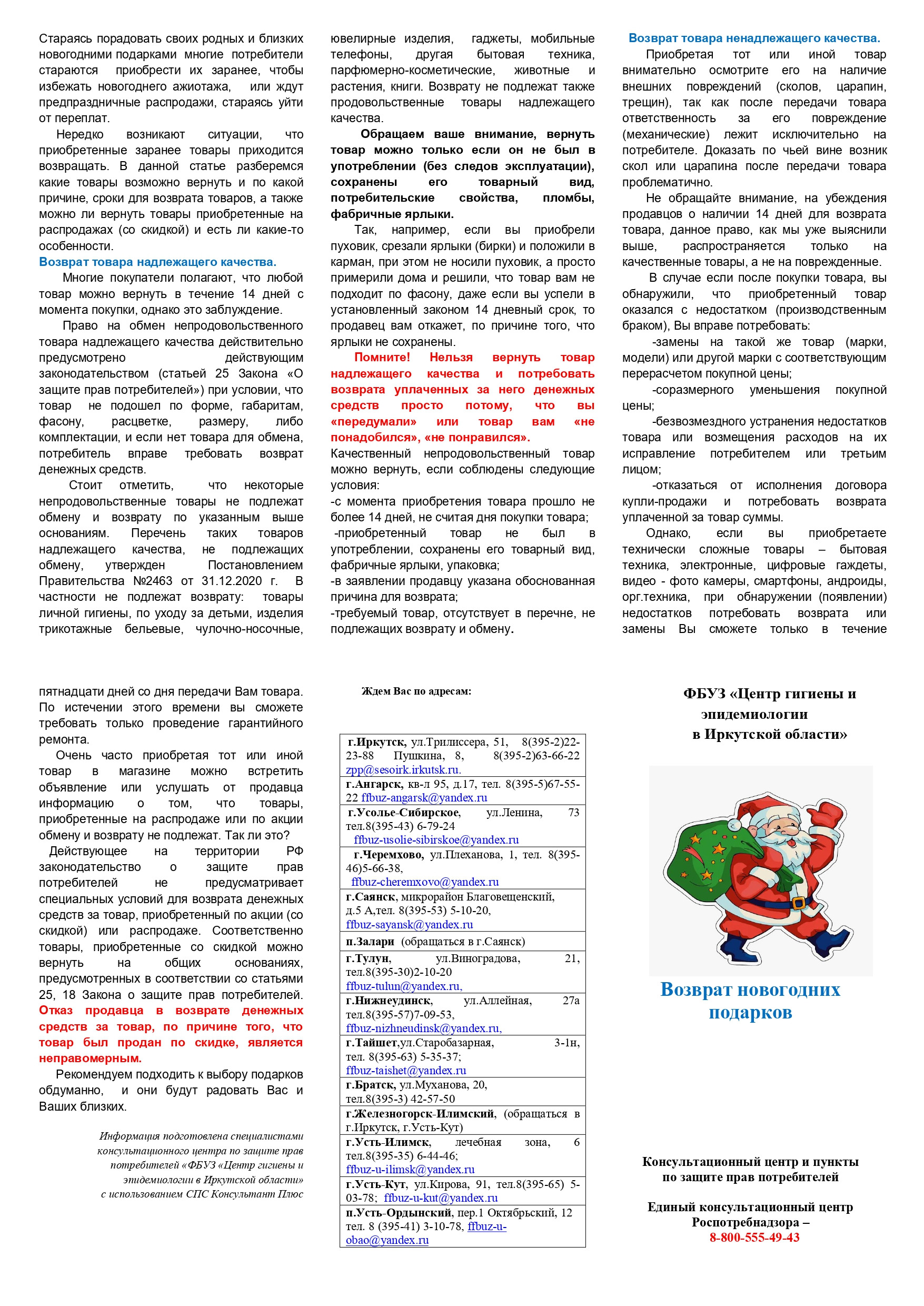 Служба потребительского рынка и лицензирования Иркутской области в предверии Нового года информирует потребителей!
